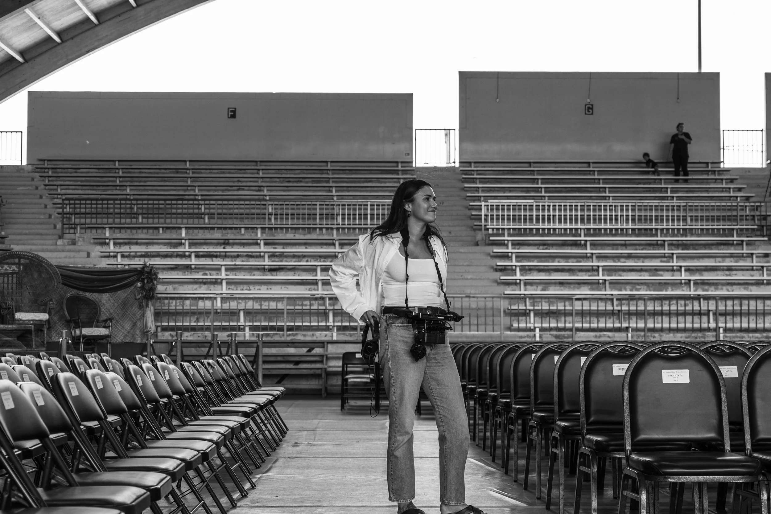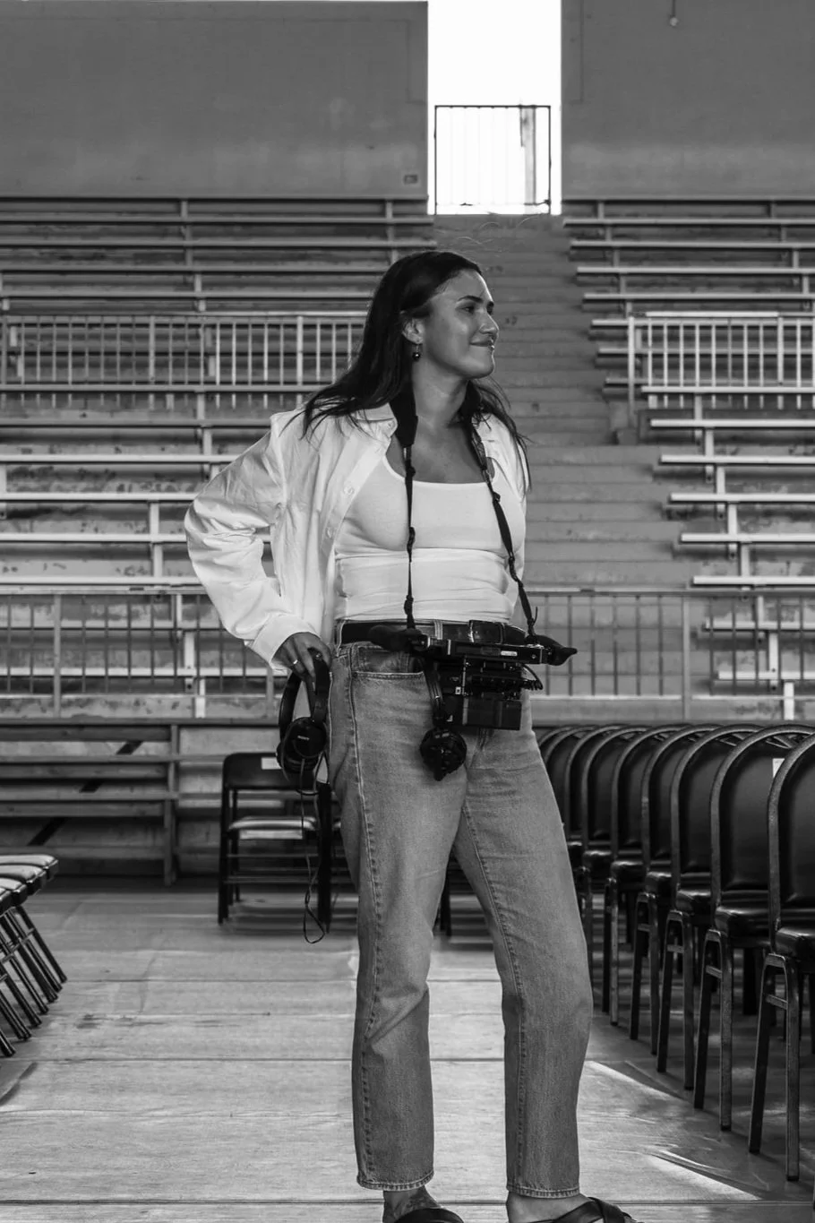 Director Zilla Barbosa on set in Hilo, Hawai‘i, at the Edith Kanaka‘ole Stadium filming Making the Line
